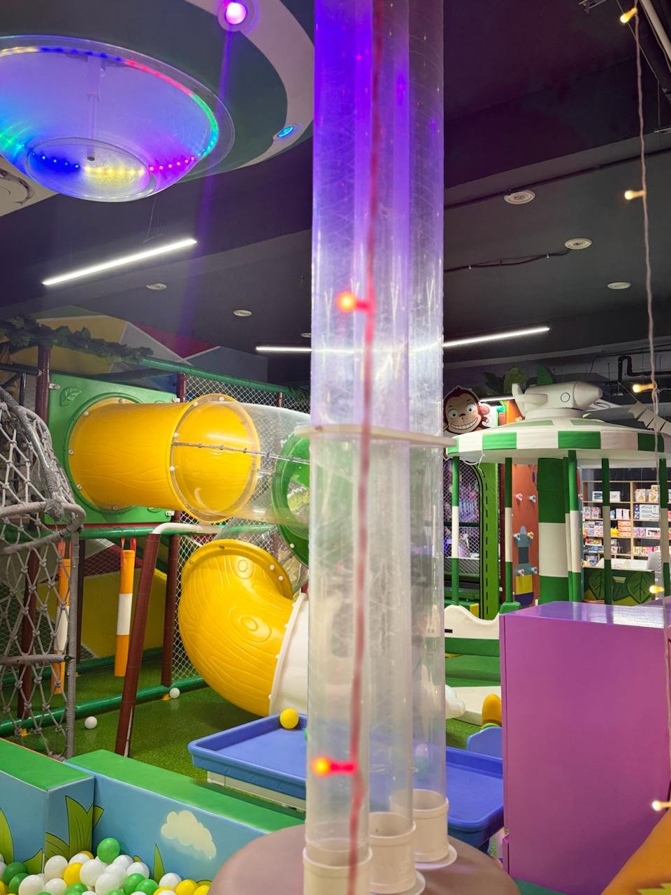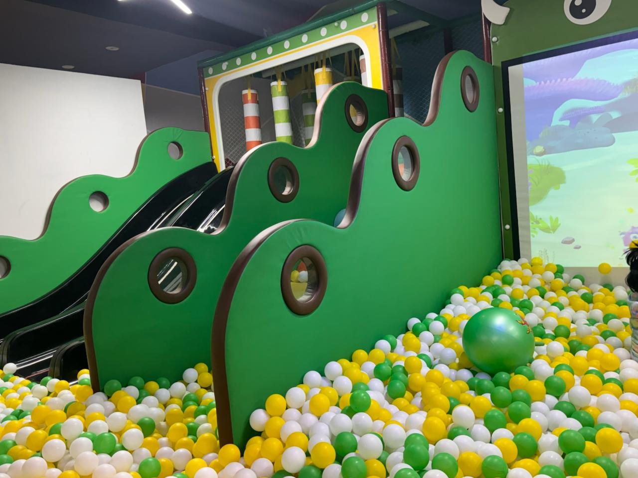 A fully cushioned, safe play area with ball pools and slides designed for young kids to play freely and confidently